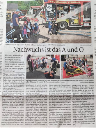 Da war aber was los bei den Kids im südthüringischen Viernau. Die Freiwillige Feuerwehr lud die künfitigen Schulkindern des Ortes zu einem Projekttag "Feuerwehr" ein. Sozusagen eine "Unterrichtsstunde im Freien". Wehrführer Henryk Hellmann und Jugendwart Steffen Büttner fanden auf jede neugierige Frage eine Antwort und ließen die Mächen und Jungen unter ihrer Aufsicht jede Menge ausprobieren. Die Begeisterung war natürlich riesig. Ins Feuerwehrgerätehaus konnten die Kindergarten-Kids nur mal hineinschauen aufgrund der noch geltenden Corona-Regeln. Aber das machte gar nichts, denn es gab ja auch nso genug zu bestauenen. Der Projekttag soll von nun an in jedem Jahr stattfinden. Mitgliedergewinnung ist auch für die Viernauer Feuerwehr ein wichtiger Punkt. Schließlich braucht es Nachwuchs für die wichtige ehrenamtliche Tätigkeit. Die künftigen Schülerinnen und Schüler waren jedenfalls schwer beeindruckt und auch die lokalen Medien haben die Aktion aufgegriffen und darüber umfangreich berichtet (siehe Beitrag INsüdthüeringen.de/Anett Recknagel).